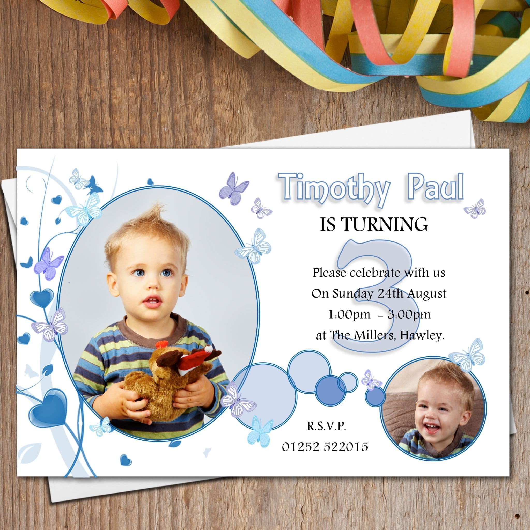 10 Personalised Boys Butterfly Birthday Party PHOTO Invitations N171