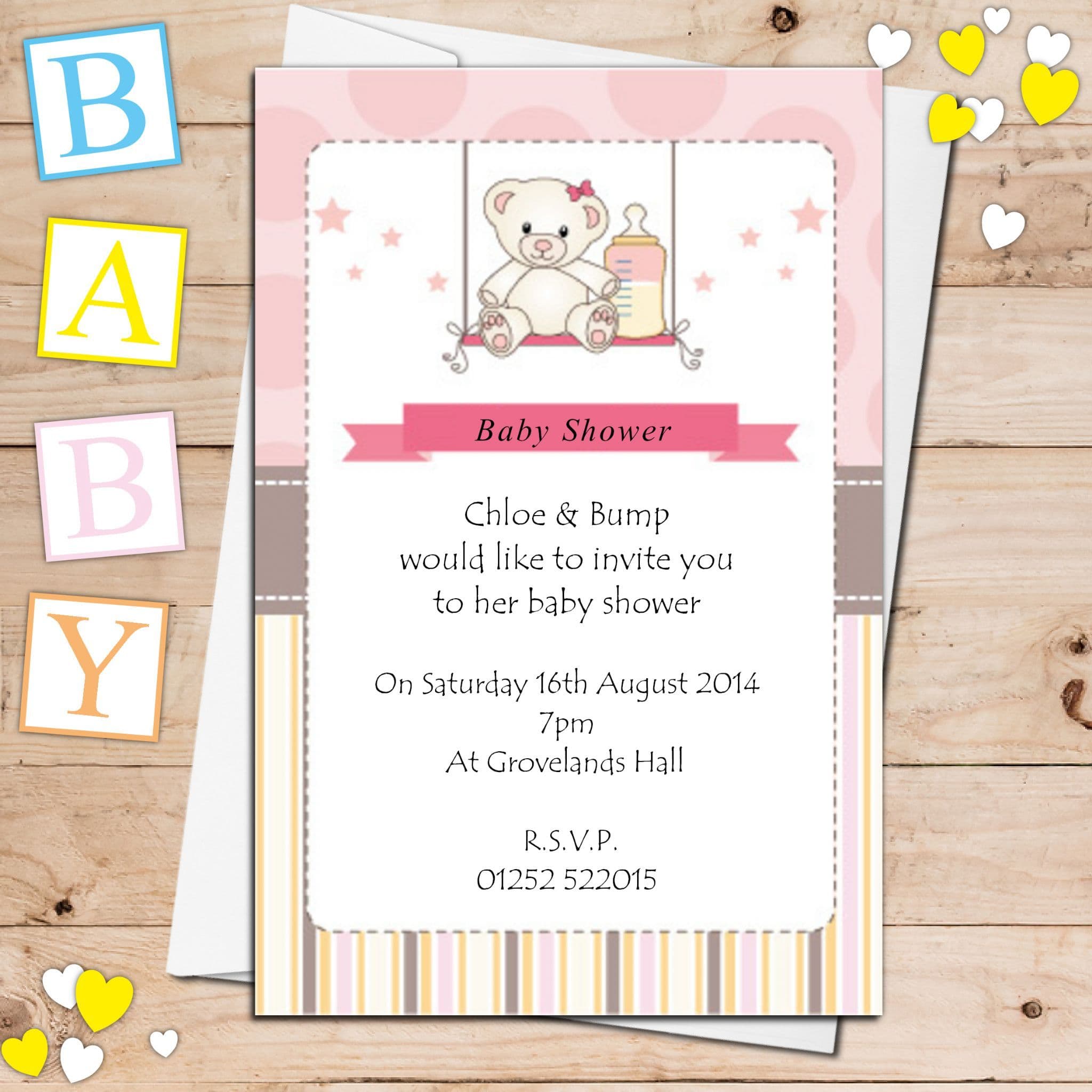 10 Personalised Pink Girl Baby Shower Invitations N10